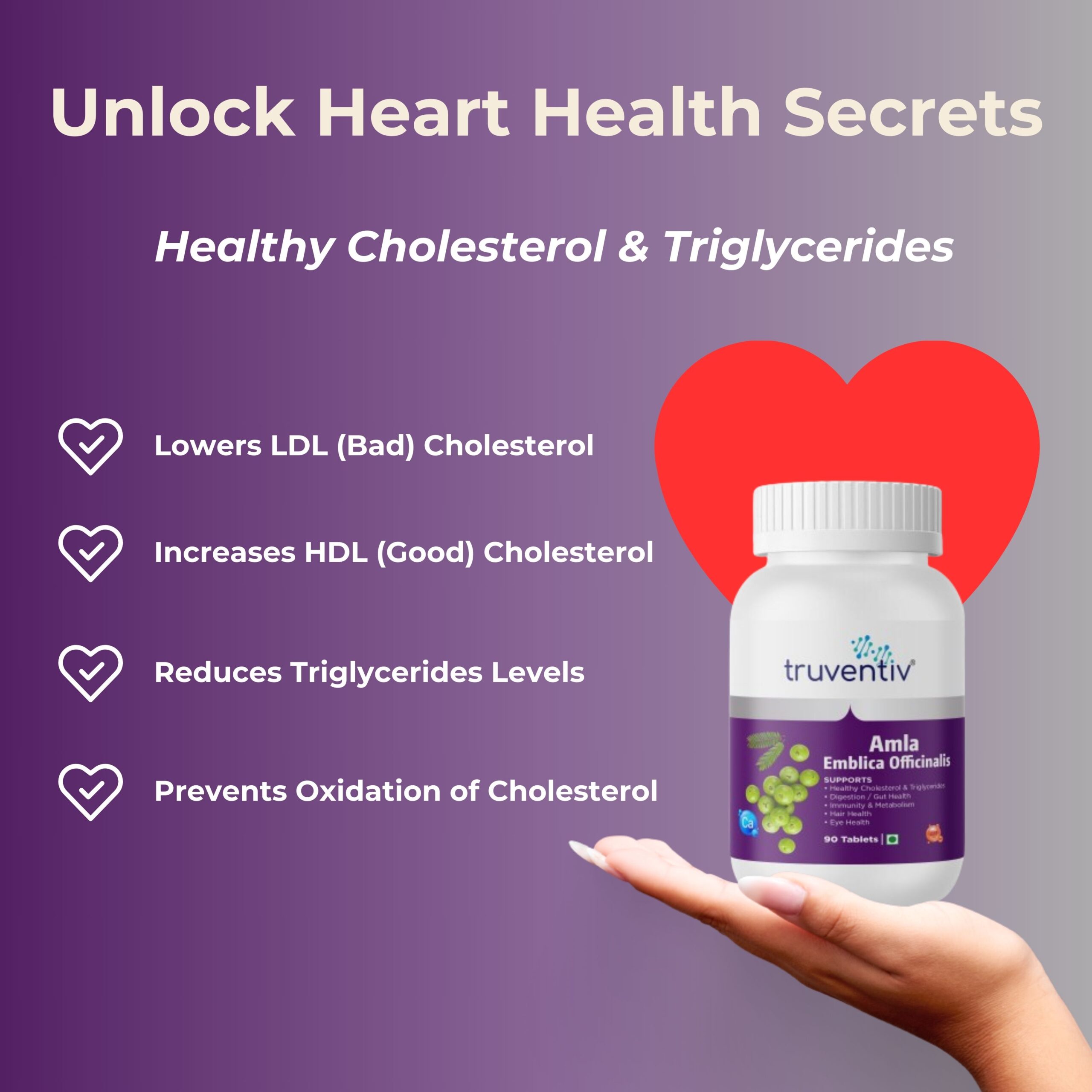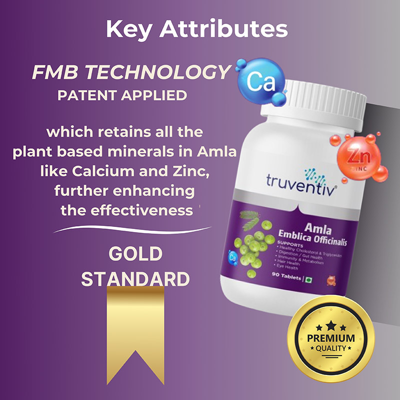 Current lifestyle, poor diet, stress, lack of sleep and environmental factors have resulted in increase in number of heart ailments. It is crucial to prioritize our heart health for better quality of life. With its rich antioxidant properties and bioactive compounds, Amla tablets seems to work by reducing LDL or bad cholesterol, including the fatty acids called triglycerides, without affecting levels of high-density lipoprotein (HDL or "good") cholesterol. It is believed to have anti-inflammatory properties which can significantly reduce inflammation and accumulation of fats in arteries & veins, thereby promoting overall heart health.