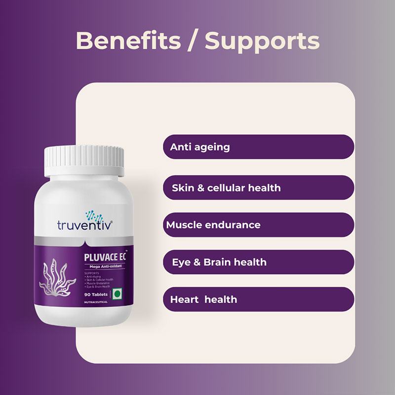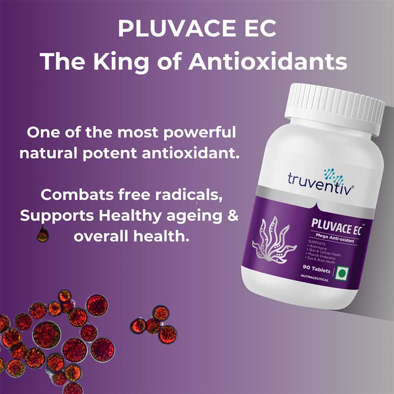 PLUVACE-EC Astaxanthin Tablets offer a powerful mega antioxidant supplement derived from one of nature's most potent sources, Astaxanthin. As the human body ages, its antioxidant defense system becomes less efficient, leading to an imbalance between oxidants and antioxidants that can negatively impact muscle strength and overall health.