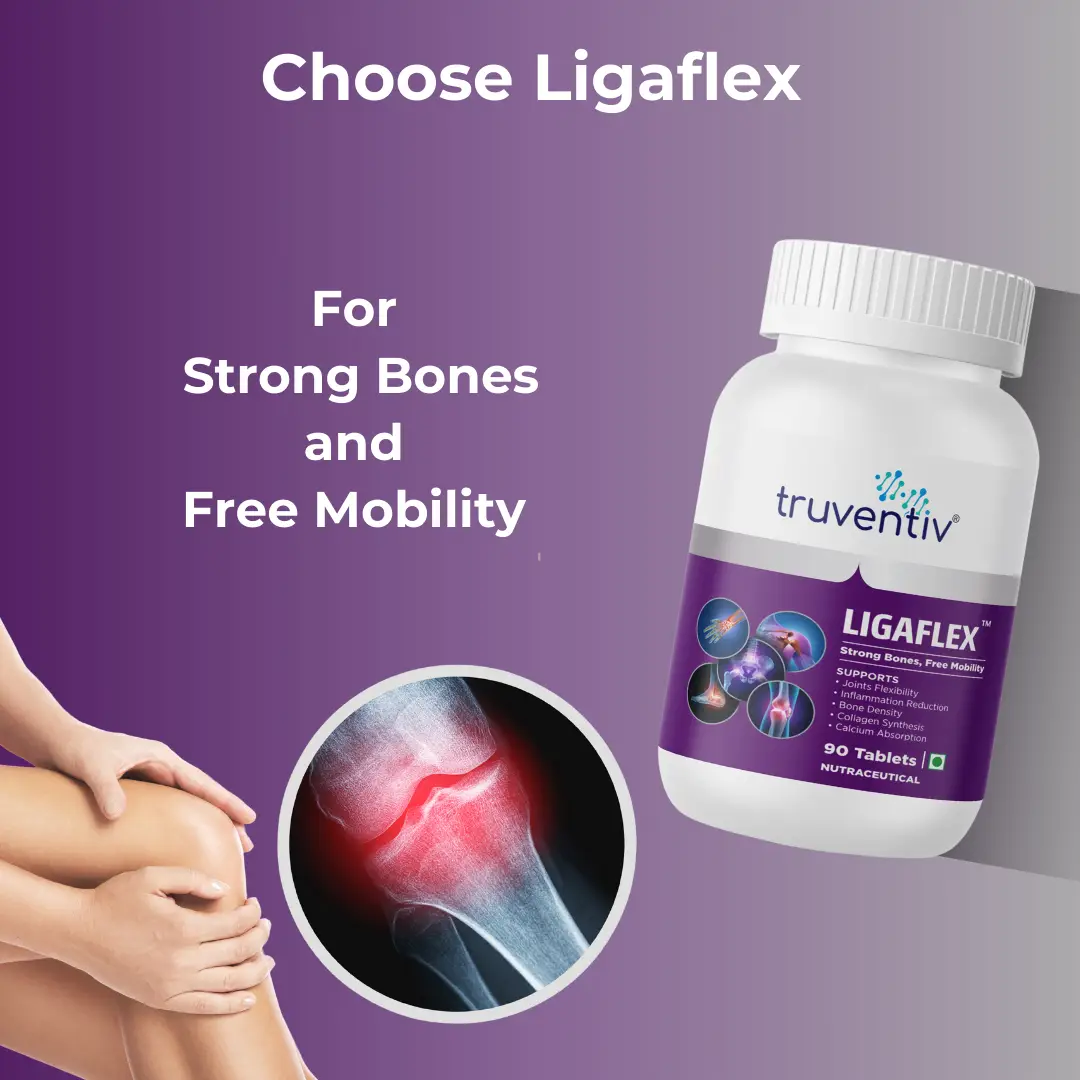 Ligaflex Tablets are a powerful Bone and Joint Care Supplement, formulated to support optimal bone, joint, and ligament health through a combination of key nutrients and compounds. These tablets are designed to improve joint flexibility by maintaining healthy cartilage, reducing inflammation, and supporting the surrounding structures, including ligaments and tendons. Our advanced formula delivers essential nutrients that your body needs to promote overall joint and bone health.